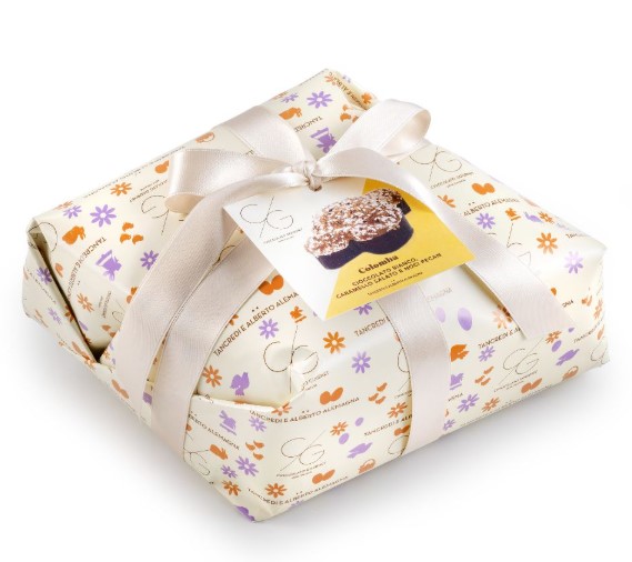 La Colomba Cioccolato Bianco, Caramello Salato e Noci Pecan è realizzata solo con materie prime di qualità, lavorate artigianalmente per dare vita ad una Colomba golosa e sorprendente! Infatti, l’impasto classico è farcito da deliziose gocce di caramello salato e gocce di cioccolato bianco e la granella è arricchita da noci pecan: un mix davvero irresistibile.