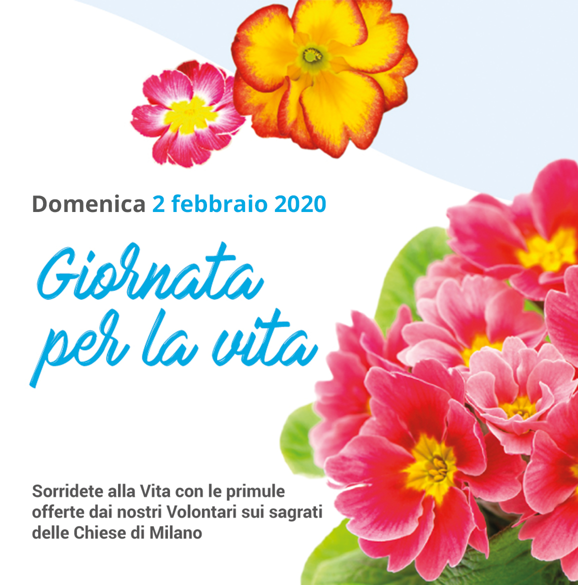 Domenica 2 febbraio si celebra la Giornata Nazionale per la Vita. I volontari del Centro di Aiuto alla Vita Mangiagalli sono presenti anche quest’anno sui sagrati di 113 parrocchie della Diocesi di Milano con gioiose e coloratissime primule. Per sapere dove trovare le primule consulta l’elenco parrocchie. Il ricavato dell’iniziativa sarà devoluto a sostegno delle mamme…